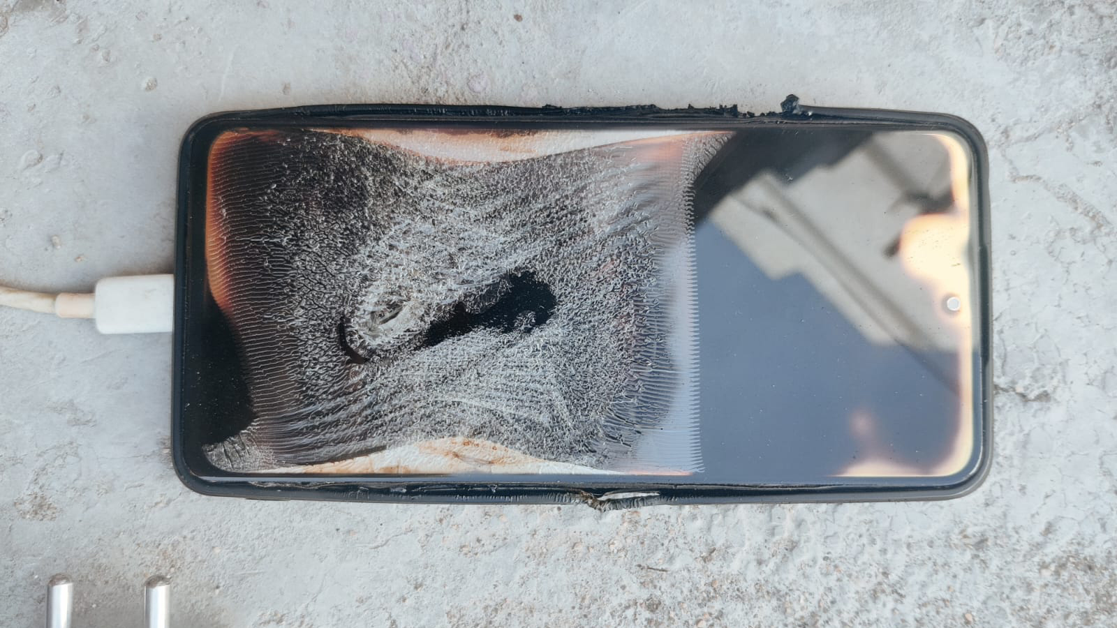 Сгоревший во время зарядки Xiaomi Redmi Note 10 Pro.