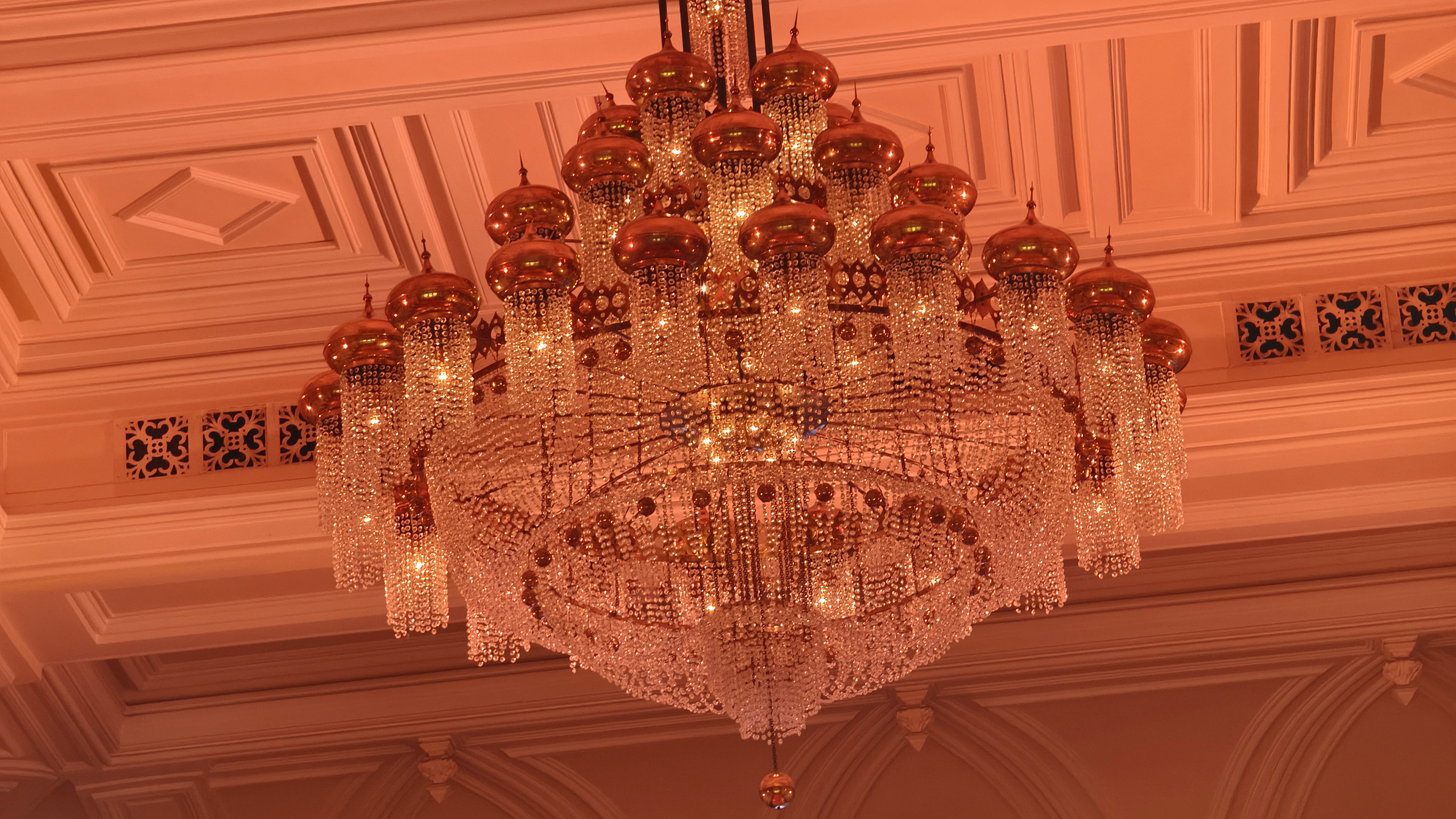 Во время презентации основной акцент был сделан на возможностях телефотообъектива на 50 Мп со светосилой оптики f/3.0. Он оснащён оптической стабилизацией и 5-кратным оптическим зумом (115 мм), 10-кратным гибридным (230 мм) и 20-кратным цифровым увеличением (460 мм). Предварительно могу сказать, что камера хорошо справляется со съёмкой в сложных условиях. Ниже несколько кадров, снятых на презентации на телевик 5× в условиях недостаточной освещённости с источниками света разной цветовой температуры. По итогу получились удачные кадры с хорошим контрастом, высокой резкостью и корректным балансом белого.