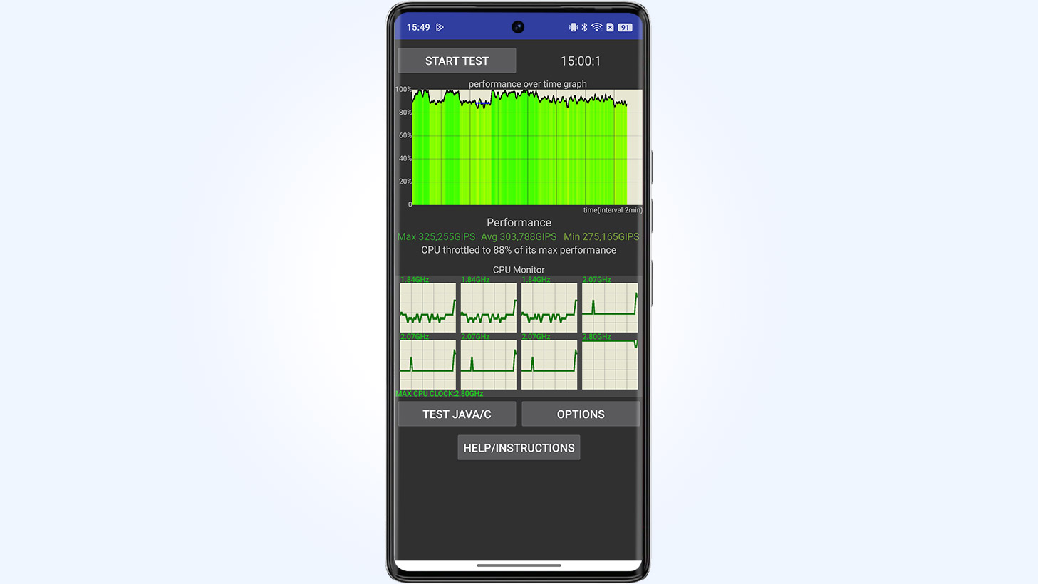 Также я протестировал смартфон на троттлинг, запустив утилиту CPU Throttling Test. Нагрев и снижение производительности под нагрузкой невелики: гаджет должен выдерживать длительные игровые баталии, не доставляя дискомфорта своему хозяину.