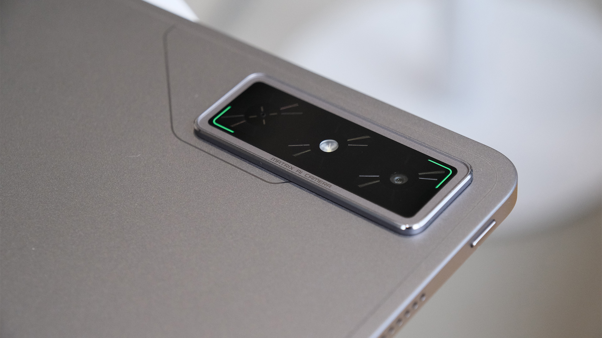 Корпус новинки — алюминиевый, довольно приятный на ощупь. При этом выглядит он интереснее, чем у большинства планшетов-середняков. Внимание привлекают декоративные линии, которые будто перекочевали сюда со спортивных автомобилей (на самом деле — с игровых смартфонов GT-серии, о которых я уже рассказывал). Да и чёрный прямоугольник блока камер кажется знакомым.
