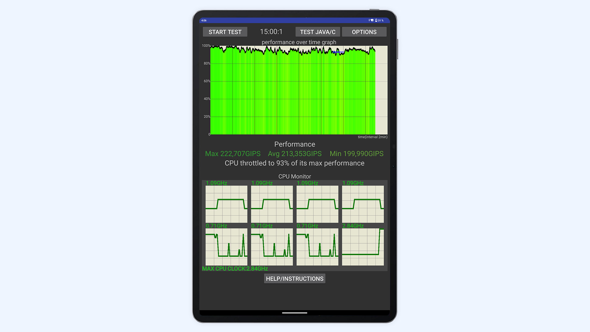 Я убедился в этом, запустив CPU Throttling Test. Результаты в этой утилите оказались достойными: график ровный, без резких провалов, температурные показатели и уровень мощности стабильны.