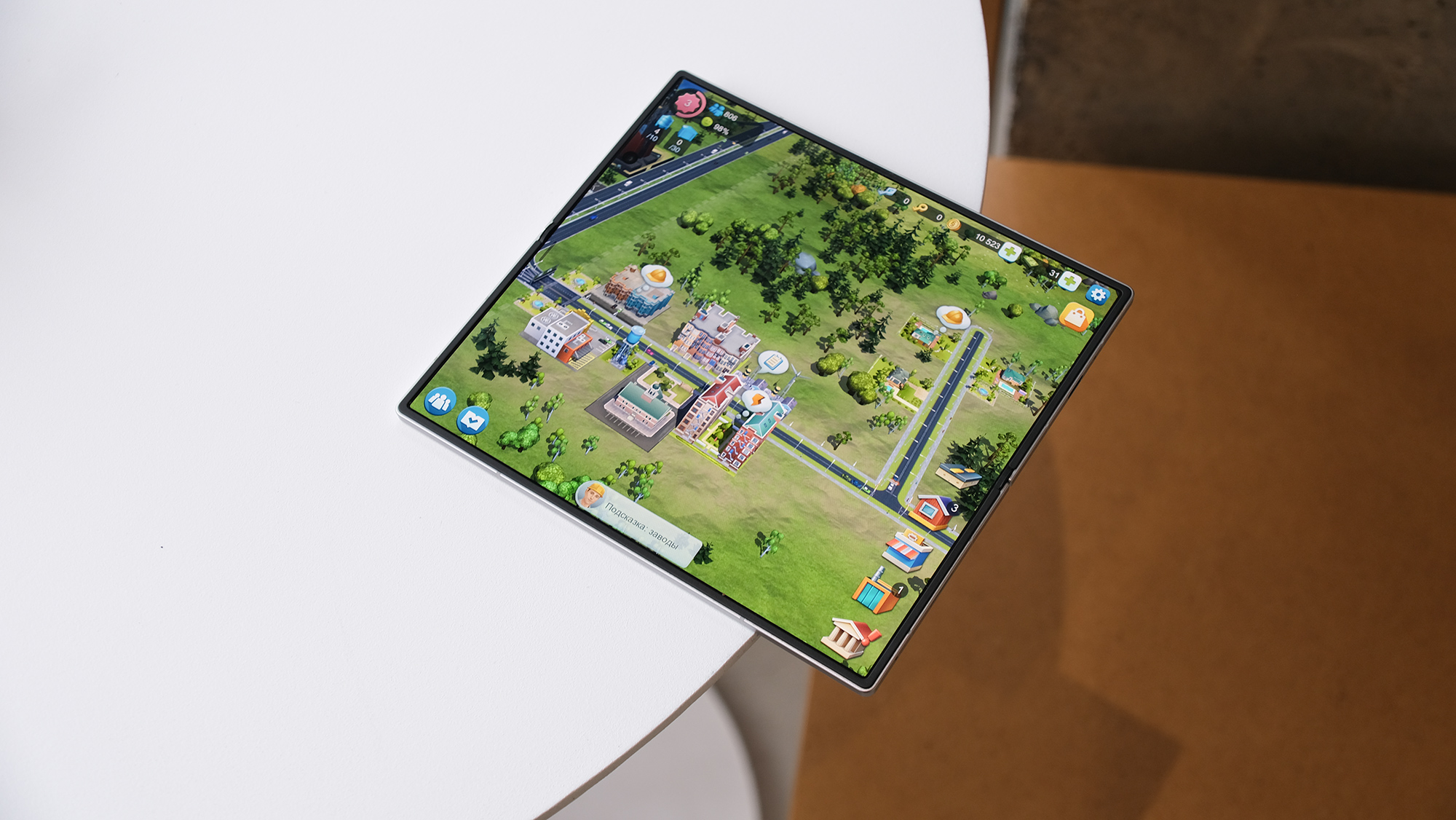 Когда раскрываешь большой 8-дюймовый дисплей, то кажется, что Samsung Galaxy Z Fold7 создан специально под такие игры. Пространства хватает, элементы крупные, интерфейс читается отлично, а мультяшная графика не пострадала при увеличении. Строить дороги, размещать здания и читать реплики жителей теперь удобно, играть становится куда веселее.