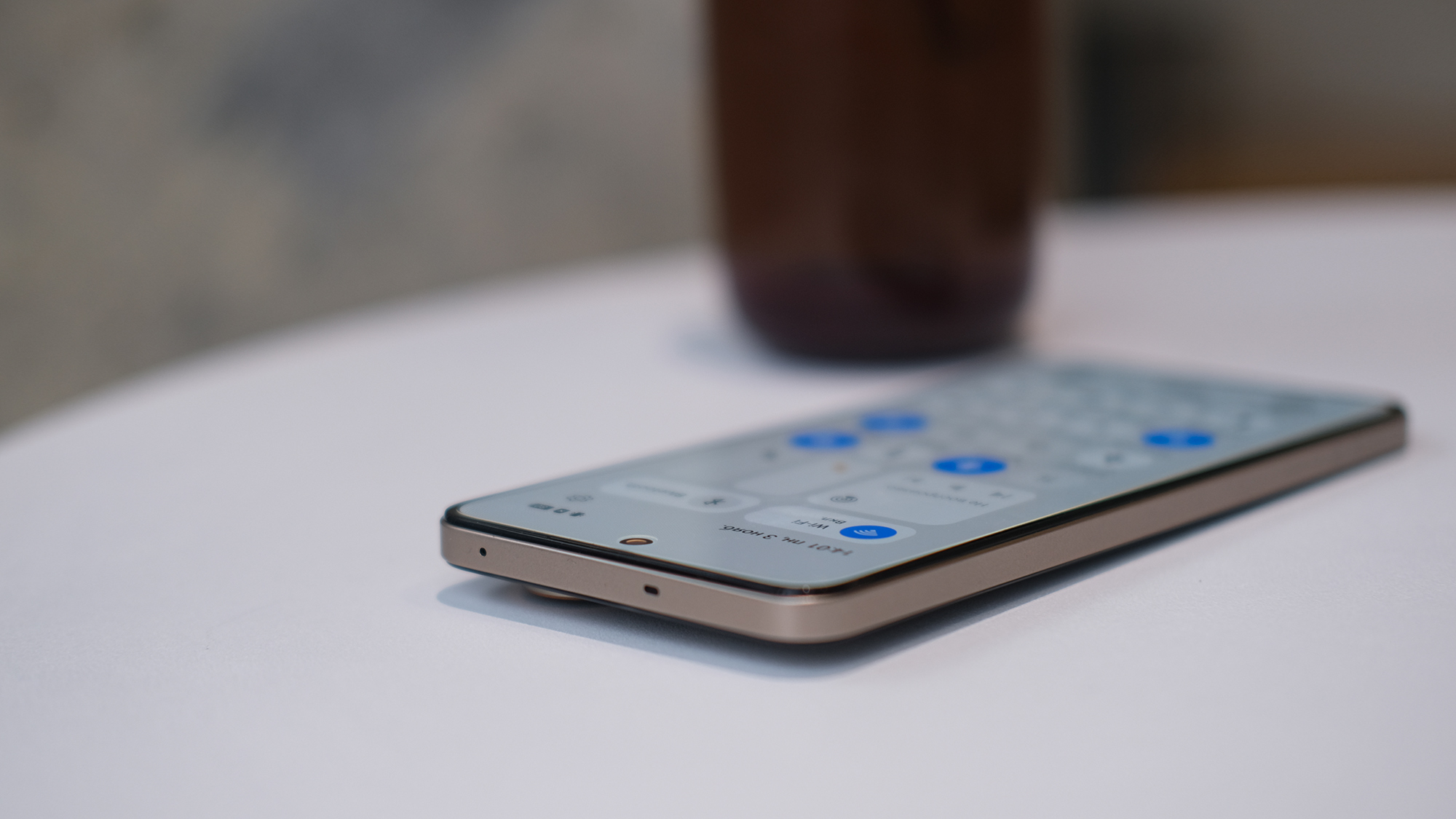 Сначала может показаться, что у Realme 15 5G тройная камера, но это не так: за съёмку отвечают только два объектива, основной и сверхширокоугольный. Сам блок камер квадратный, несильно выступает над корпусом, а вот ободки объективов выпирают заметно. Как итог, лежащий на столе смартфон будет ощутимо раскачиваться — чтобы ответить на сообщение, лучше взять гаджет в руку.