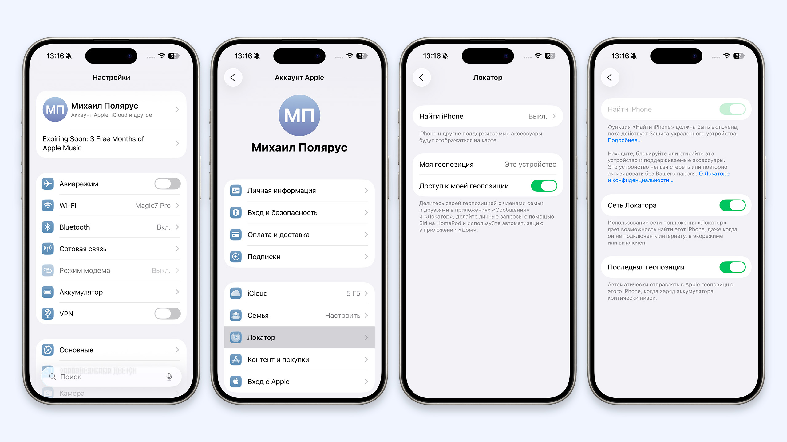 Как включить «Локатор» для поиска iPhone. Откройте Настройки → перейдите в свой аккаунт → пункт «Локатор» → включите «Найти iPhone». Если в будущем вы потеряете смартфон, его можно будет заблокировать, чтобы злоумышленники не получили к нему доступ.