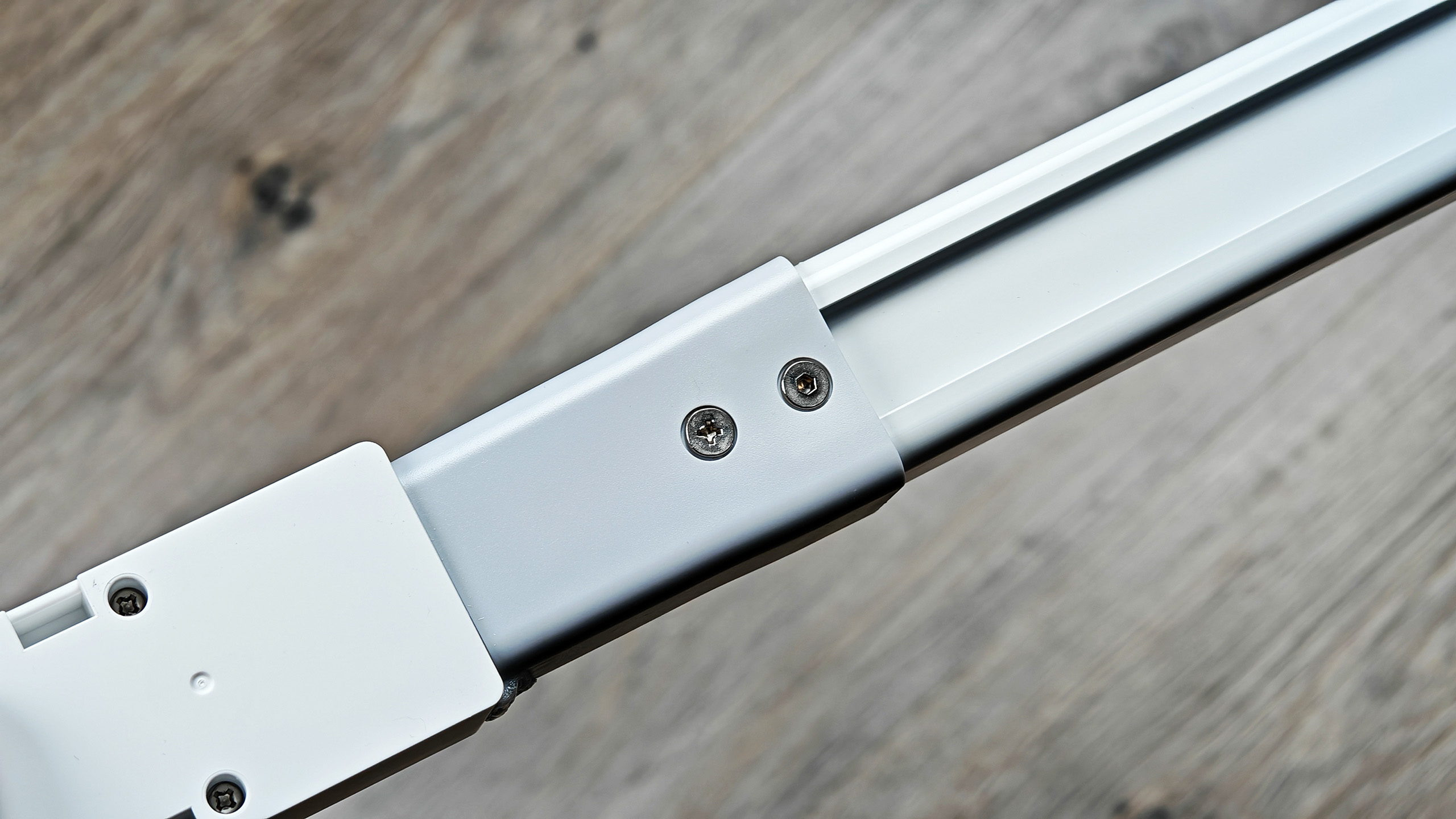 Карниз телескопический, то есть подстраивается под ширину окна. На выбор компания предлагает два варианта: 1,8–3 и 2,5–4,5 метра — для большинства квартир этого хватит. А вот для больших загородных окон, скорее всего, придётся взять пару устройств, если хотите управлять количеством естественного света во всей гостиной голосом.