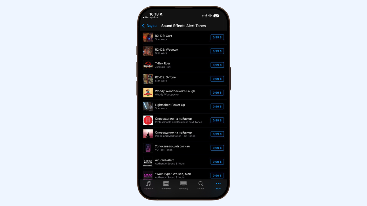 Вы можете купить дополнительные сигналы через iTunes. Там представлено огромное количество как рингтонов, так и звуков из фильмов, игр и сериалов. При желании вы можете слушать знаменитый смех дятла Вуди Вудпекера при получении нового письма или рёв Ти-Рекса из «Парка Юрского периода» при новом уведомлении в календаре. Но учтите, что такие звуки стоят около доллара, а оплатить их в России может быть проблематично.