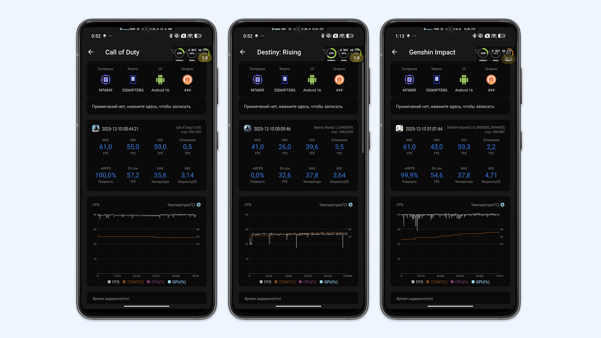 Даже в требовательной Destiny: Rising частота кадров в среднем не опускалась ниже 39 FPS, что для нефлагмана — хороший показатель. О плавности работы смартфона вне интерактивных развлечений можно и не говорить: устройство охотно справляется с параллельной работой в нескольких приложениях без тормозов.