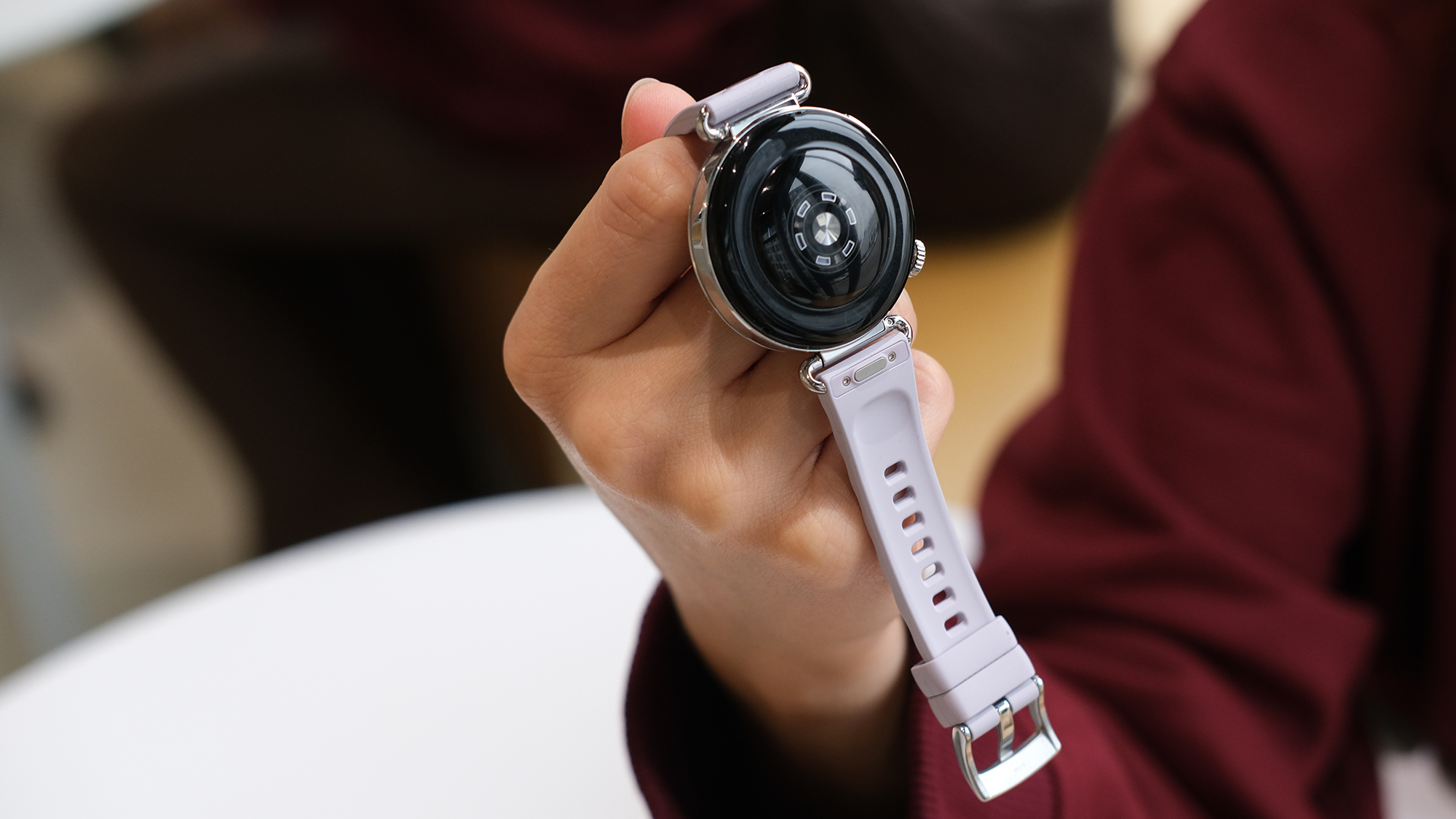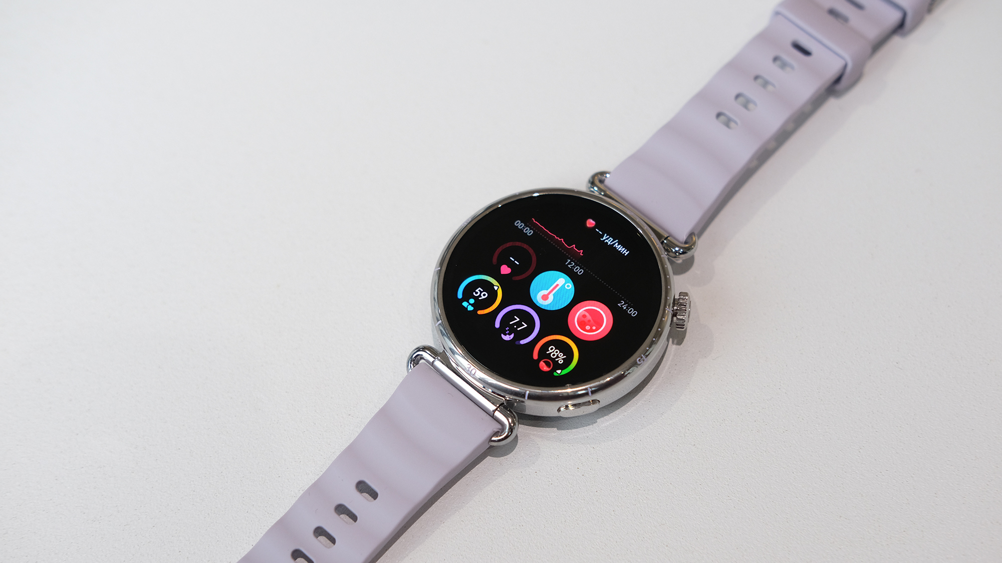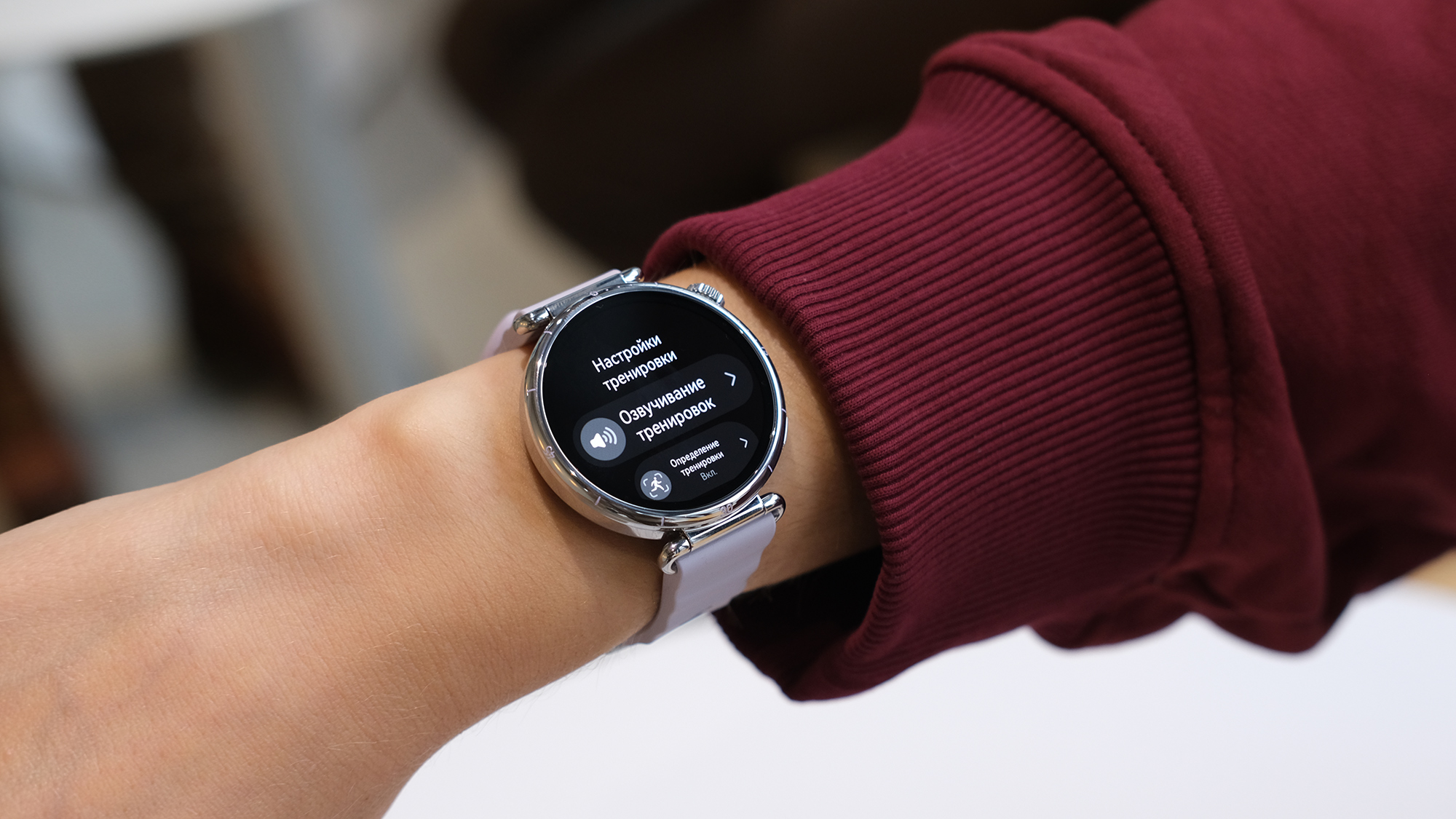 Мне нужны были небольшие часы с дизайном, который подходил бы к женской руке и гармонировал с повседневным образом. Выбор был сделан в пользу Watch GT 6 с экраном 41 мм и сиреневым ремешком из фторэластомера. Корпус самих часов при этом серебристый — мне это нравится, я предпочитаю украшения из серебра, а не золота. Есть также золотистый вариант с ремешком другого цвета. Все версии с диагональю 41 мм подчёркнуто женственные по дизайну и цветовой палитре. Если предпочитаете более брутальные, выбирайте Huawei Watch GT 6 с экраном 46 мм.
