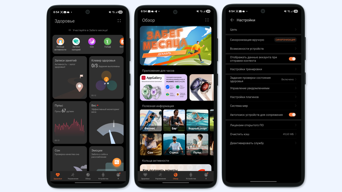 У Huawei Health есть как плюсы, так и минусы. Из достоинств — здесь можно узнать много данных о своём самочувствии, гибко настроить внешний вид и работу часов, также программа стабильно получает обновления. Ещё можно найти и загрузить несколько полезных программ во встроенном магазине: например, сервис для хранения карт лояльности, приложение OZON, сервис StarLine для использования часов как ключа вашего автомобиля и так далее.