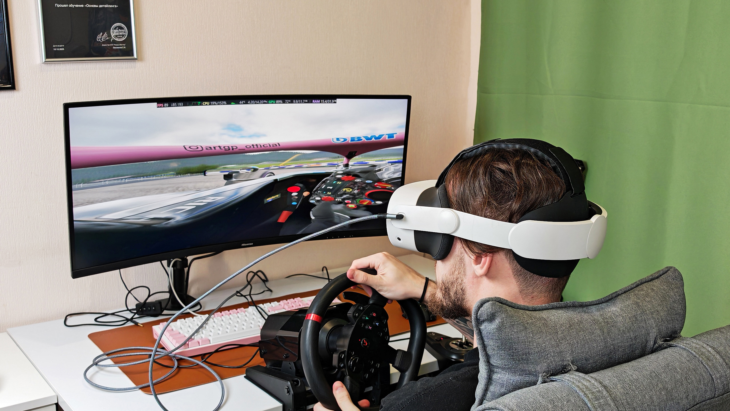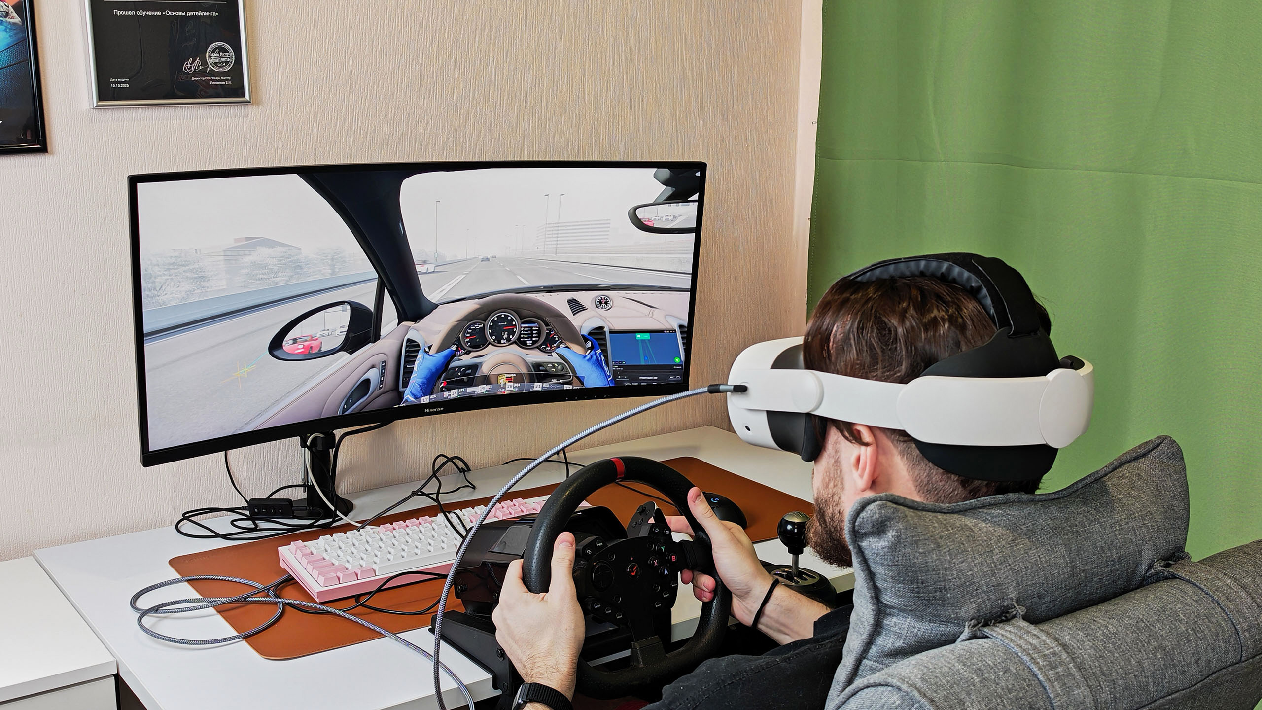 Главным открытием стали гонки в VR. Я уже пару лет увлекаюсь автоспортом. У меня есть неплохой руль с педалями и механической коробкой переключения передач, но игра пусть даже на изогнутом 21:9 мониторе на 34 дюйма никогда не давала полного погружения. VR буквально изменила правила игры.