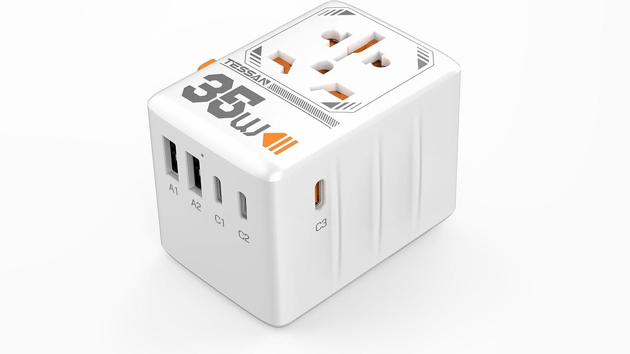 Лучшим выбором станет полноценное зарядное устройство с несколькими встроенными в него переходниками. Аксессуар совместим с европейскими, азиатскими и американскими розетками. Не нужно возить с собой дополнительные аксессуары и думать о том, в какой стране какой стандарт. Такое ЗУ лёгкое, достаточно компактное, и часто имеет несколько портов для зарядки: можно одновременно запитать смартфон, электробритву и наушники. Хороший вариант — Tessan на 35 Вт, практичный адаптер с несколькими USB Type-A и Type-C, который подходит к любым розеткам.
