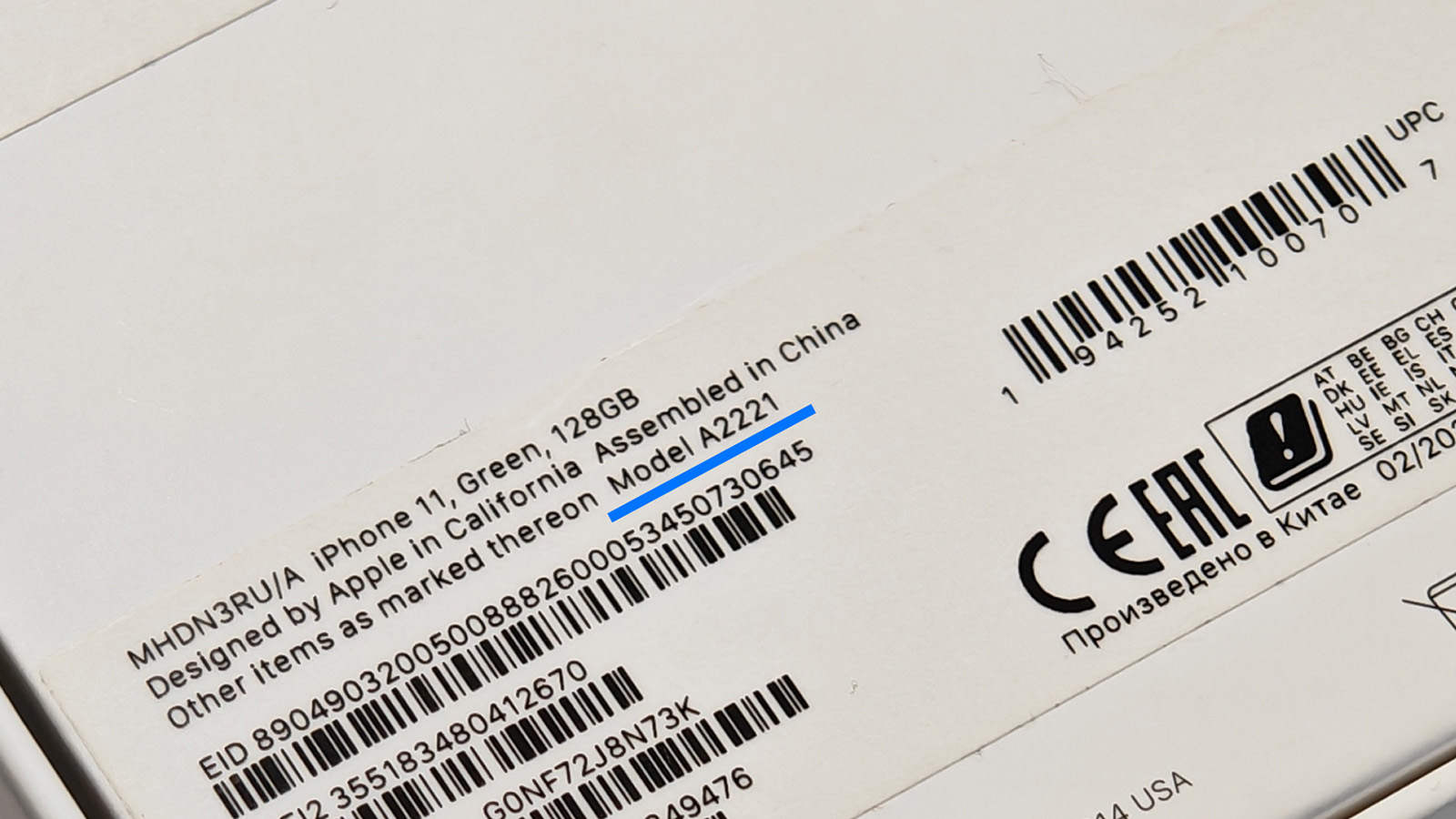 Если у вас сохранилась заводская коробка от смартфона — это самый верный источник данных. На упаковке, как правило сзади или сбоку на специальной наклейке, производитель указывает полное название модели, объём памяти, цвет и серийный номер.