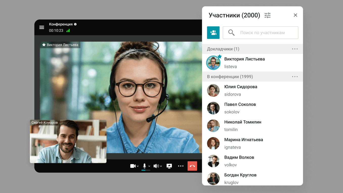 Российская платформа конференц-связи ориентирована в первую очередь на бизнес. Она позволяет организовывать видеовстречи в разрешении 4K, в которых могут бесплатно принять участие до 10 человек без ограничений по времени. В отличие от многих конкурентов, в TrueConf можно подключать к конференции абонентов мобильных и стационарных телефонов.