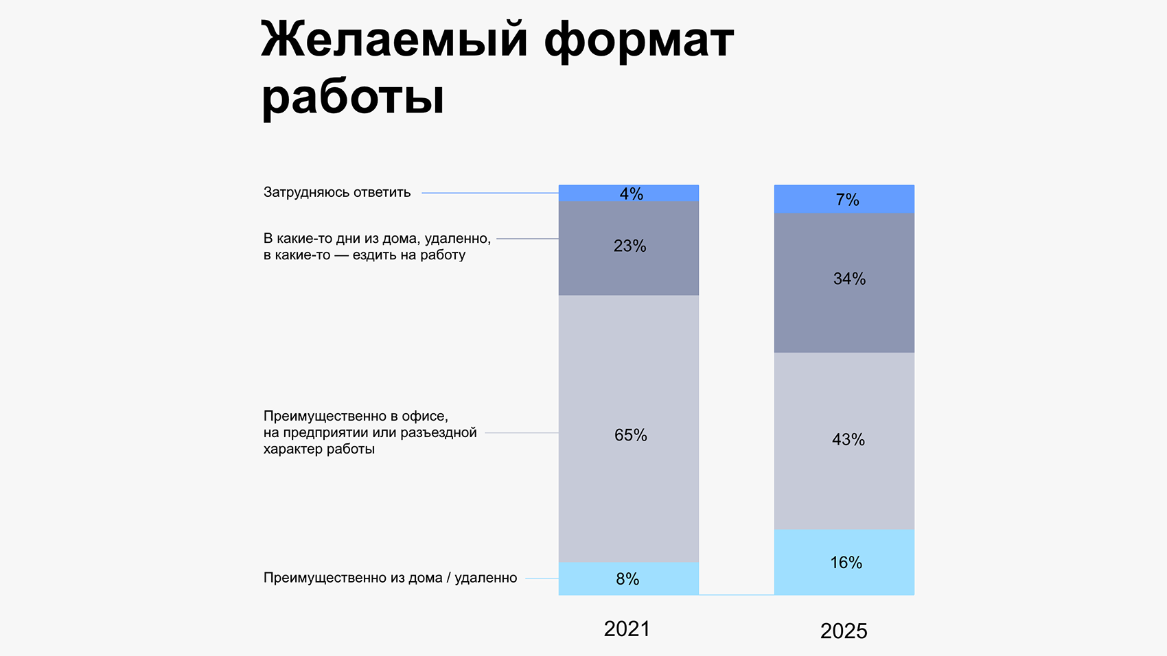 После окончания локдауна количество работников, которые бы предпочли работать удалённо или в гибридном формате, только увеличилось.