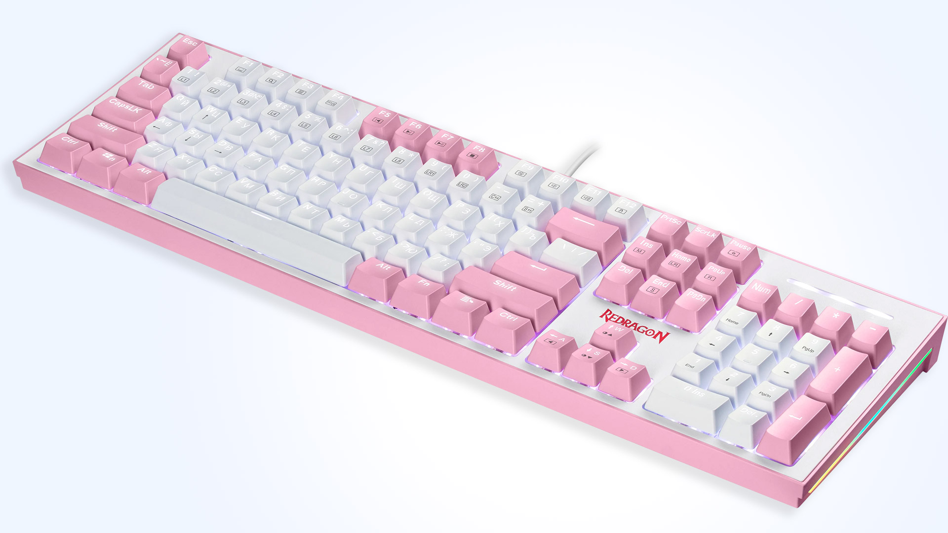 Redragon Hades почти классика в сегменте бюджетных механик, которая отличается полноразмерным исполнением с NumPad и бело-розовым дизайном. В ней также реализована технология Hot Swap, но в отличие от других моделей в ней используются более распространённые переключатели Outemu Brown (Tea). Это тактильные свитчи, которые обеспечивают чёткий отклик.