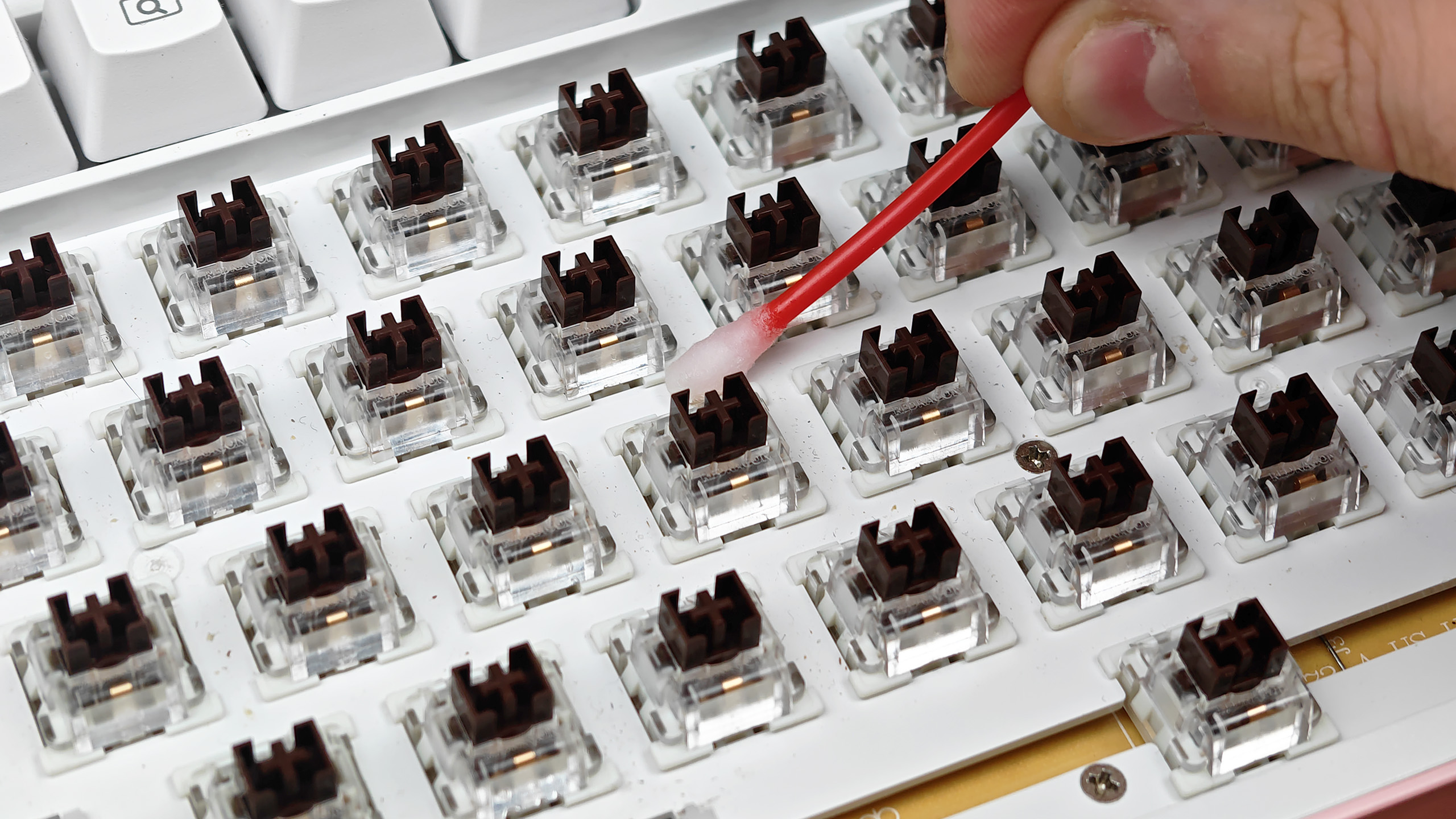 Шаг 5. Протрите каждый свитч с помощью ватной палочки, смоченной изопропиловым спиртом.