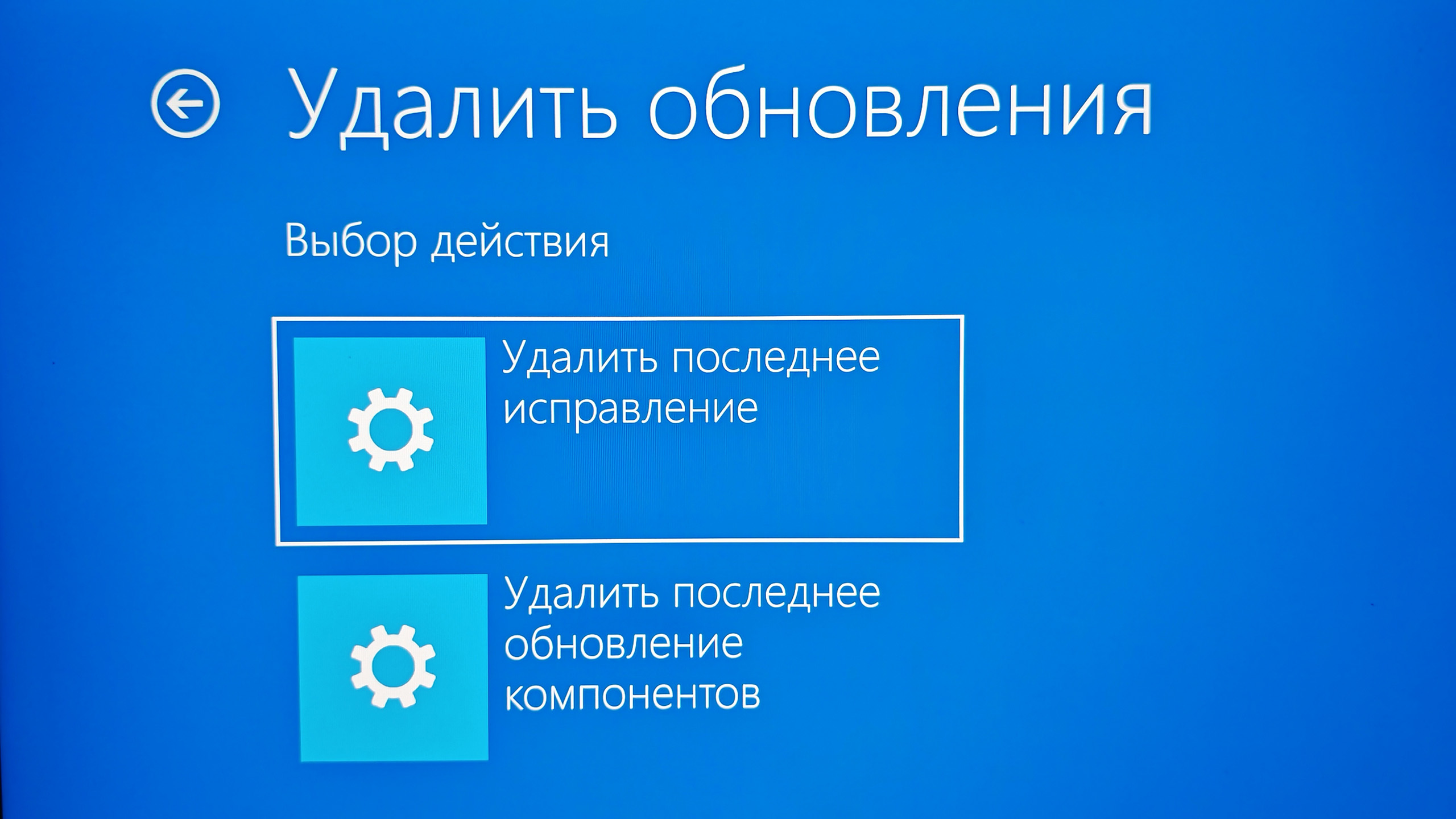 Система предложит два варианта: удалить последнее качественное обновление (патч безопасности и исправления) или последнее функциональное обновление (апдейт версии Windows). Начинайте с первого варианта — он устраняет сбой, возникший после недавнего апдейта. После удаления обновления Windows перезагрузится и проверит целостность файлов. Если всё пройдёт успешно, после перезагрузки компьютер будет готов к работе.