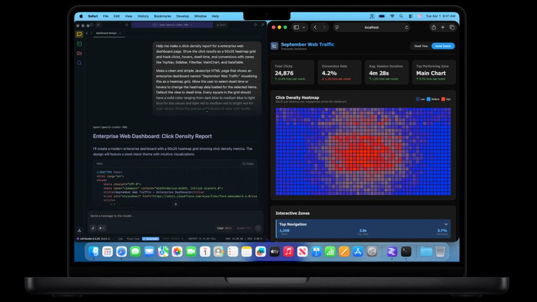 Помогает в работе с локальными моделями и увеличенная пропускная способность памяти: в M5 она выросла до 153 Гб/с, что на 27,5% быстрее, чем у M4 с его 120 Гб/с. Более быстрая память сказывается и при работе с другими требовательными задачами, в которых обрабатываются большие массивы данных, например при обработке 3D-сцен или многослойных проектов в графических редакторах.