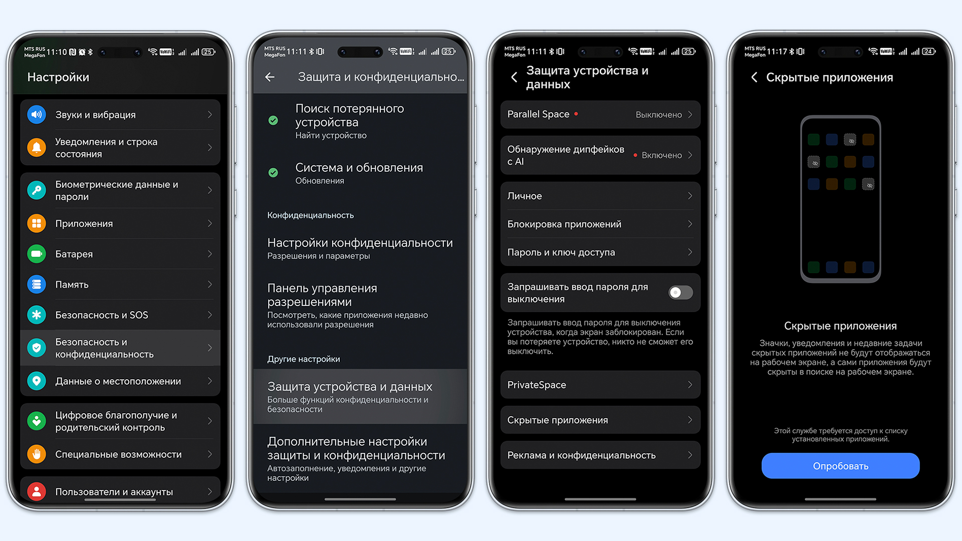 Скрытие приложений — встроенная функция большинства современных смартфонов. Она пригодится, если вы хотите защитить личные данные, скрыть переписку, приложения для работы, банковские сервисы или, например, игры от детей, а также прочие приложения. Однако независимо от того, что вам нужно скрыть, учитывайте, что: