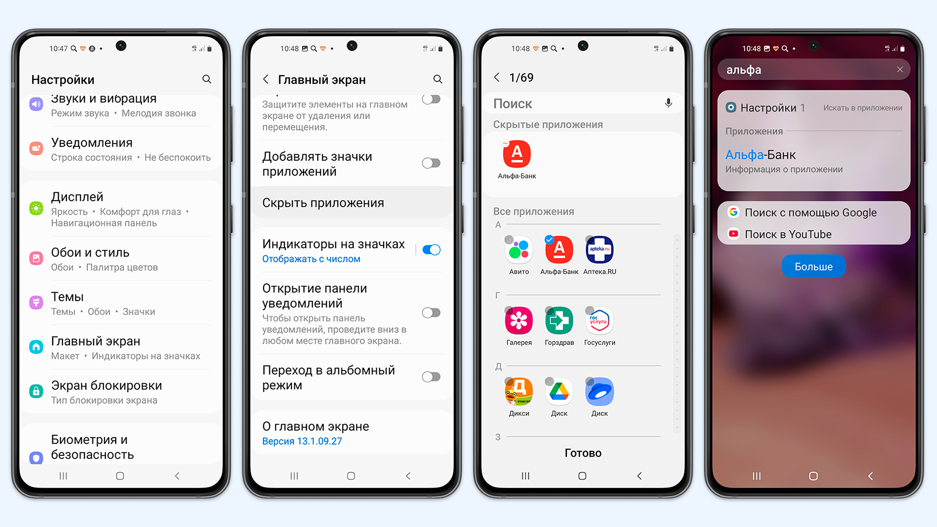 Помимо средств, встроенных в смартфон, дополнительно можно установить сторонний лаунчер — приложение, которое меняет интерфейс Android и добавляет больше возможностей, например для управления рабочим столом и скрытия приложений. Но есть нюанс: такие решения могут работать неидеально и с перебоями, а также могут быть небезопасными, поэтому рекомендовать их не можем.