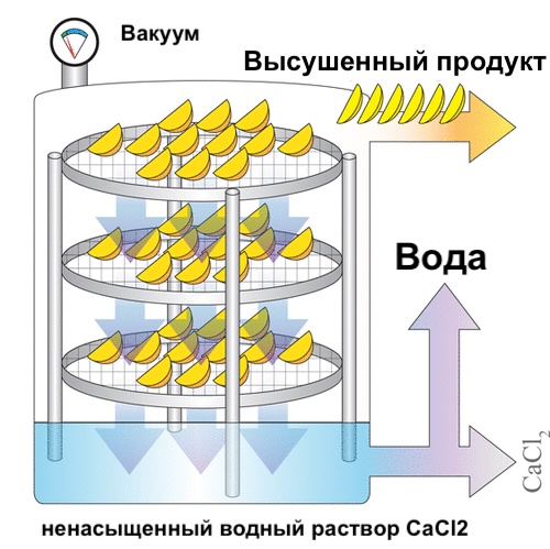 В основе нового метода лежит способность хлорида кальция активно поглощать влагу. Ученые построили специальную камеру для обезвоживания, в которой над контейнером с раствором хлорида кальция были размещены несколько сит с ломтиками фруктов. Затем они сравнили два подхода к сушке при комнатной температуре: один при обычном атмосферном давлении, а другой — в условиях небольшого вакуума.