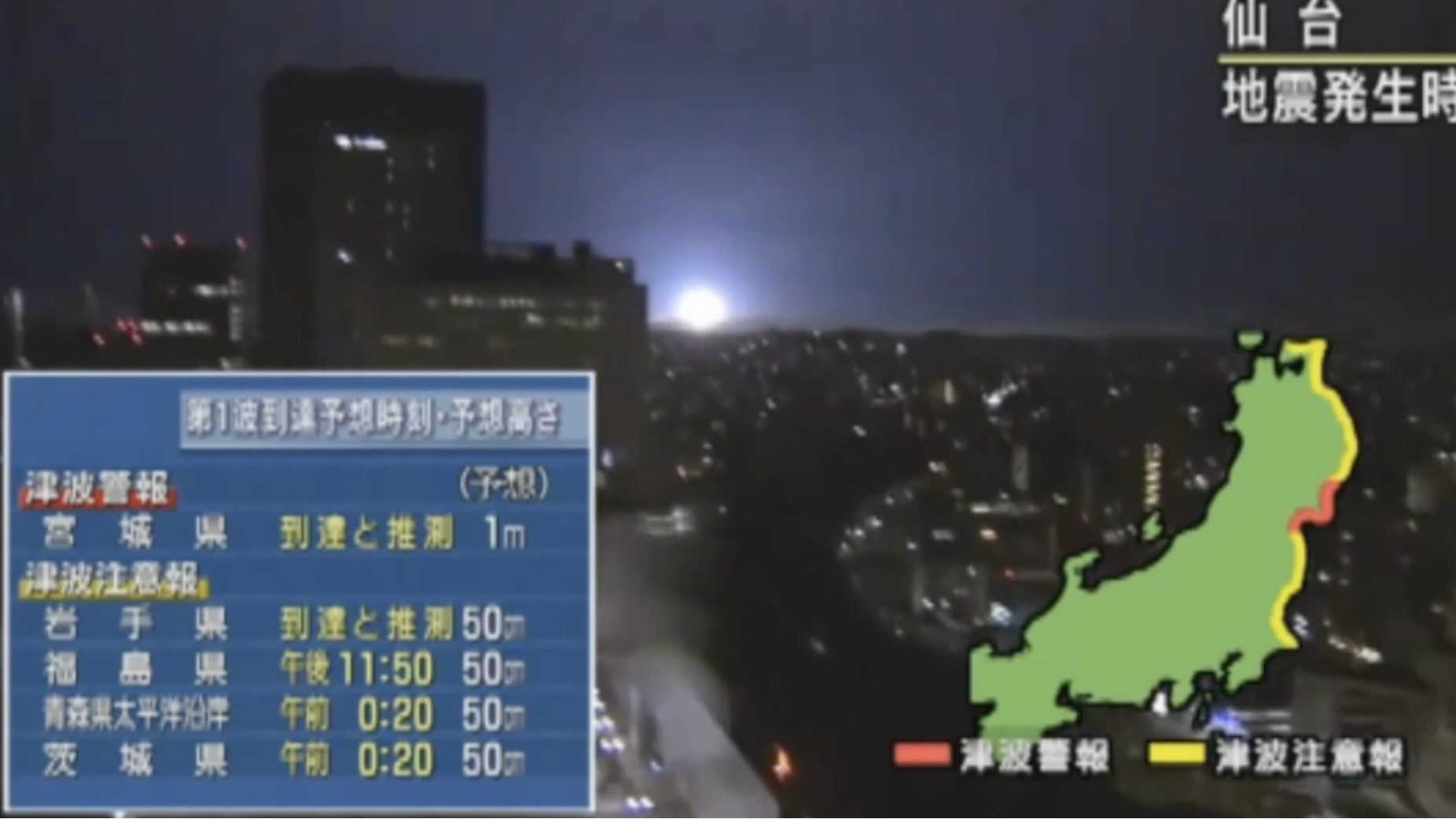 Вспышка свет на горизонте перед началом землетрясения в Японии в 2011 году