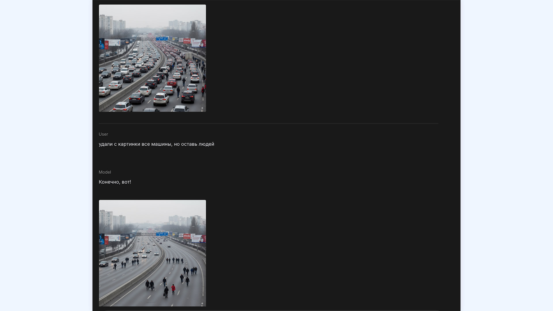 Одно из главных преимуществ Nano banana — это возможность редактировать и изменять созданное изображение прямо в диалоге. Вы можете сгенерировать изображение, а затем уточнять его простыми командами, как если бы общались с дизайнером. Например, нейросети можно написать «сделай фон ярче» или «убери все машины».