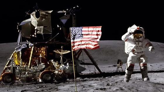 - Флаг. Национальный флаг США выглядел «развевающимся» не из-за ветра, которого нет в вакууме, а потому, что был подвешен на горизонтальной телескопической перекладине для придания ему формы. Астронавты не до конца выдвинули эту перекладину, что создало эффект волнистости.