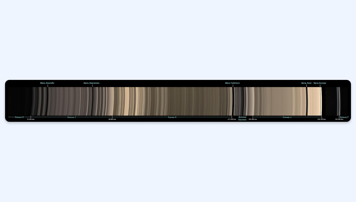 Ключевая особенность колец — их состав. Они почти полностью (до 99.9%) состоят из чистого водяного льда. Именно эта чистота и делает их такими яркими: лёд отлично отражает солнечный свет.