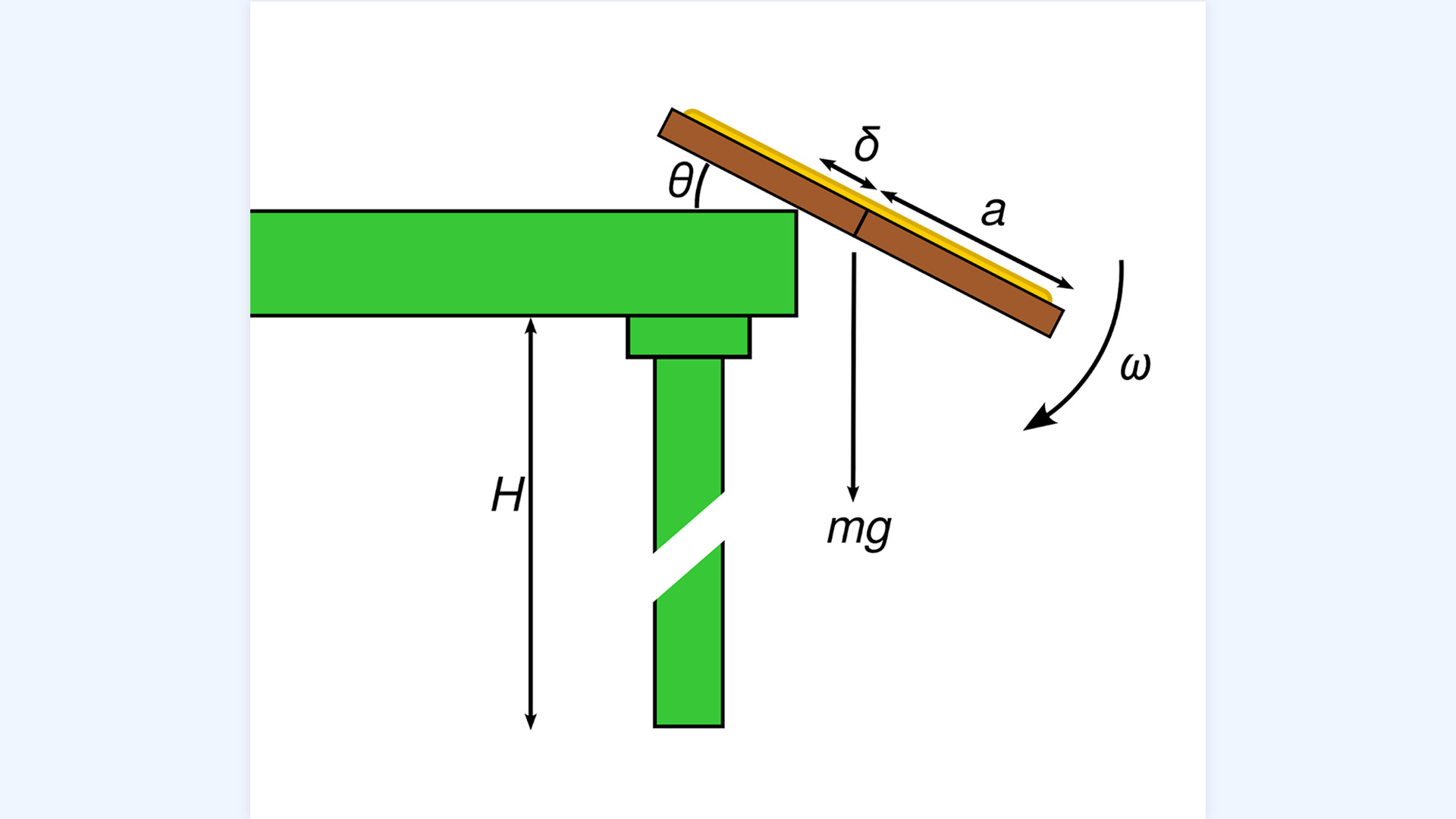 Чертеж Роберта Мэттьюса, иллюстрирующий силы, действующие на бутерброд в момент соскальзывания со стола