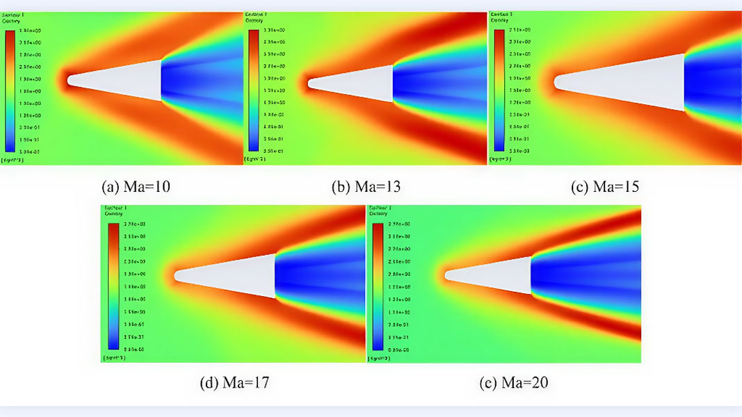 Распределение плотности реального плазменного щита в зависимости от скорости в числах Маха (1 Мах = 340 м/с).