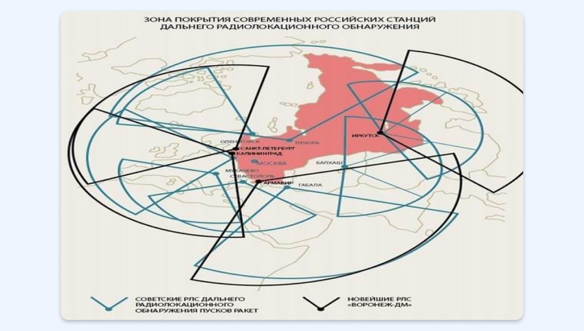 Зоны покрытия советских и современных РЛС дальнего обнаружения пусков ракет