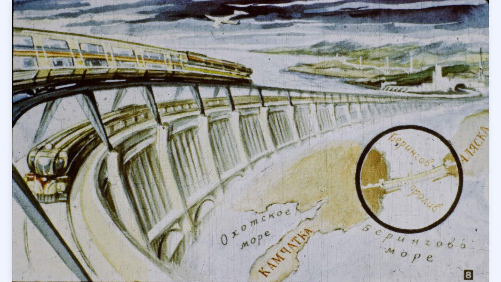 В конце 1950-х годов, на волне веры в силу атома, инженер Пётр Борисов предложил проект, выходящий за рамки государственных границ. Он хотел построить колоссальную плотину между Чукоткой и Аляской.