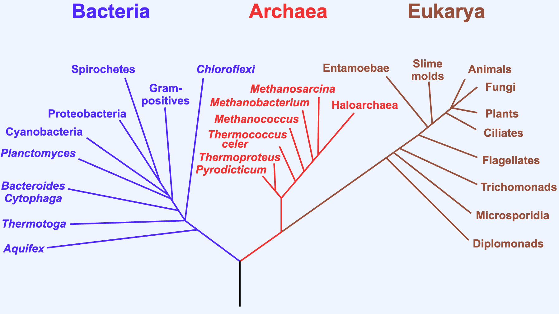 Кладограмма, связывающая все основные группы живущих организмов с LUCA