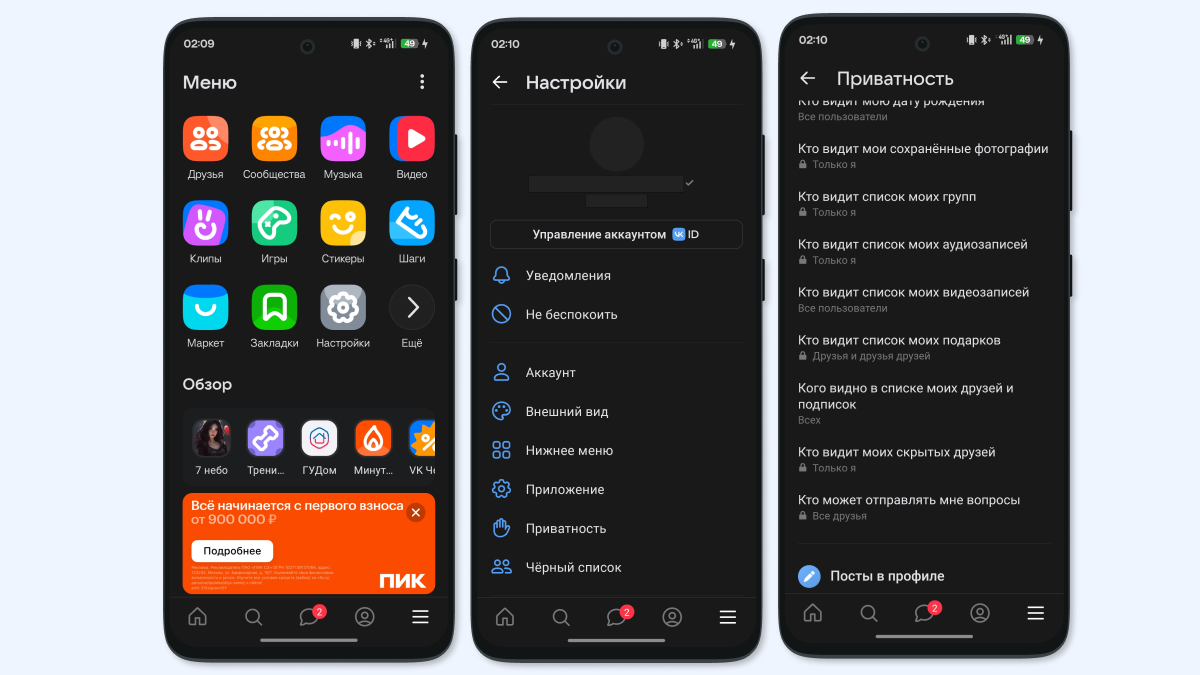 Эта инструкция создана для Android-смартфонов, но если у вас iPhone, разница будет минимальна — логика интерфейса и название настроек в мобильном приложении VK для iOS и Android похожие.