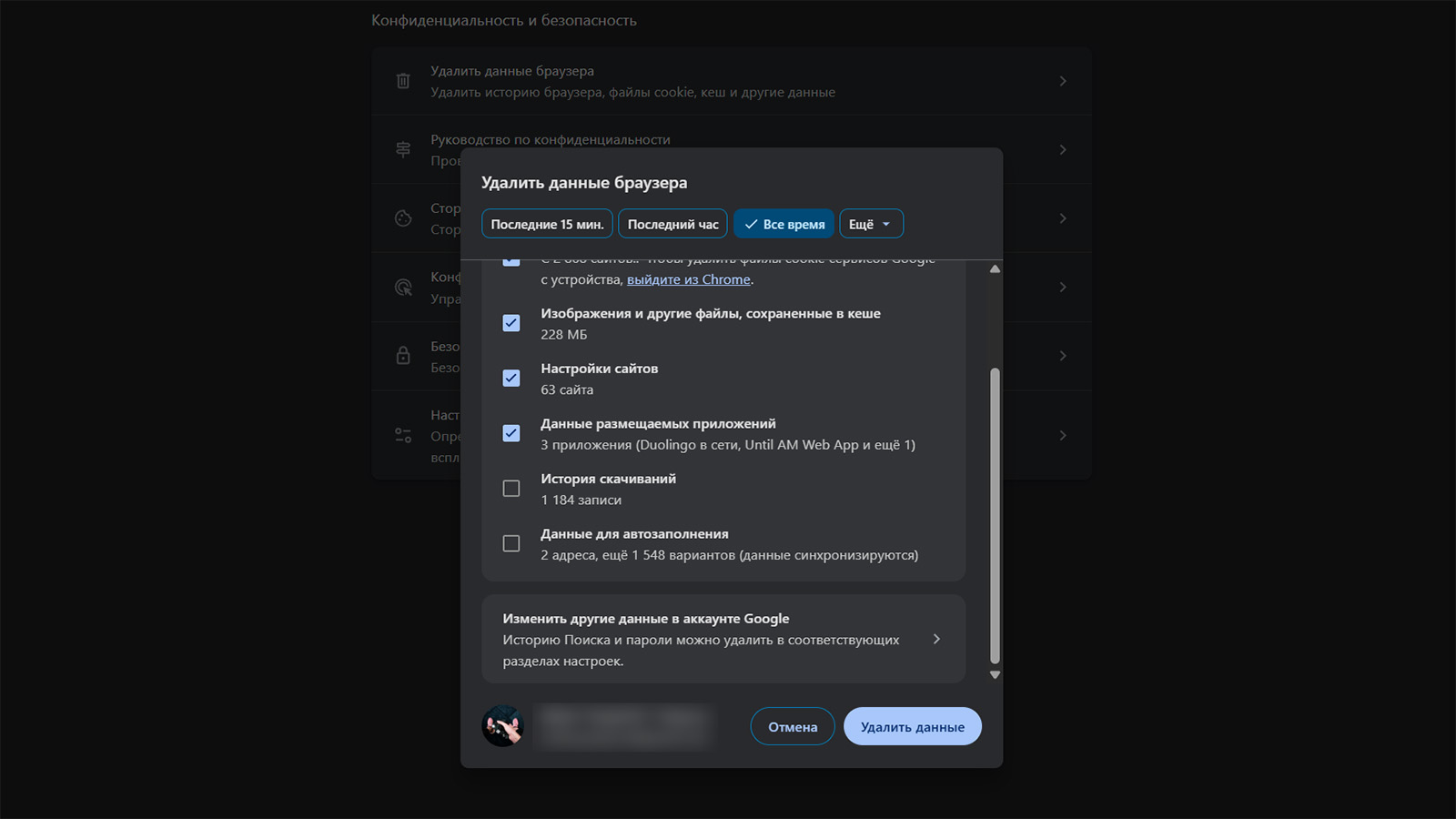 - Нажмите кнопку «Очистить историю» или «Удалить данные».