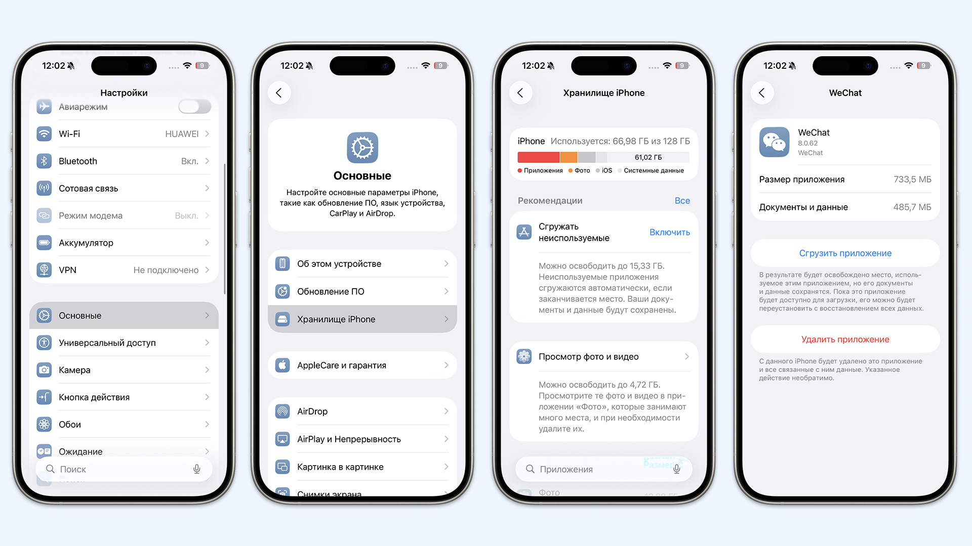 Apple в отличие от Google не дают такую же кнопку «очистить всё», полагаясь на автоматическую оптимизацию системы. Напрямую очистить кэш на iPhone нельзя; максимум, что можно сделать — сгрузить приложение и скачать его заново, если оно работает некорректно. Эта процедура позволяет сохранить данные о приложении на смартфоне, но удалить саму программу из памяти.