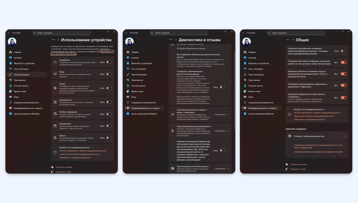 На стандартных настройках WIndows 11 собирает большое количество различных данных: