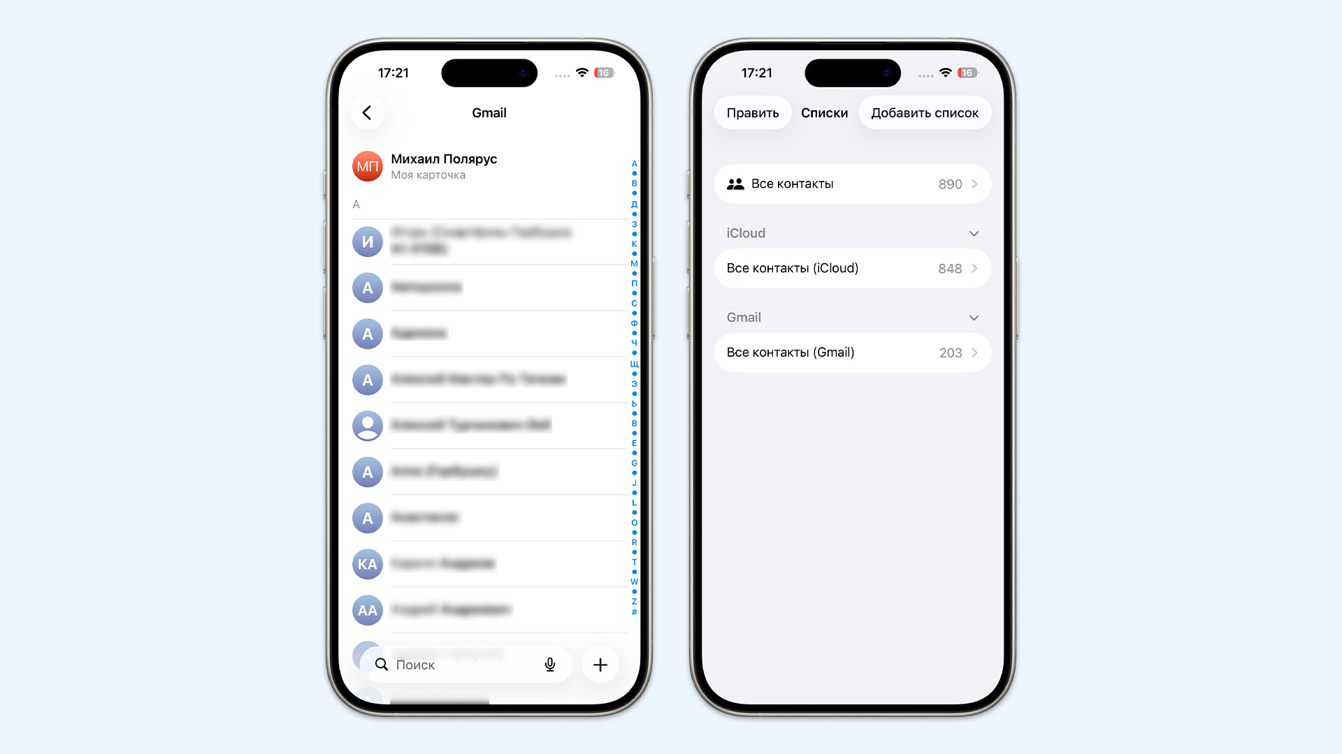 Для хранения контактов iOS использует протокол CardDAV, который периодически «засыпает». Вы можете добавить контакт на компьютере в Gmail, но на iPhone он появится только через несколько часов или не появится вовсе, так как система «забыла» опросить сервер Google. Если контакты не приходят, зайдите в «Контакты» → «Группы» (сверху слева) и потяните список вниз для принудительного обновления.