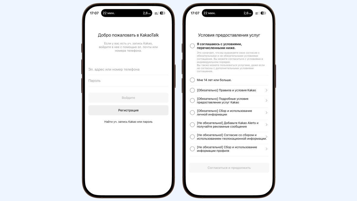 Регистрация в KakaoTalk