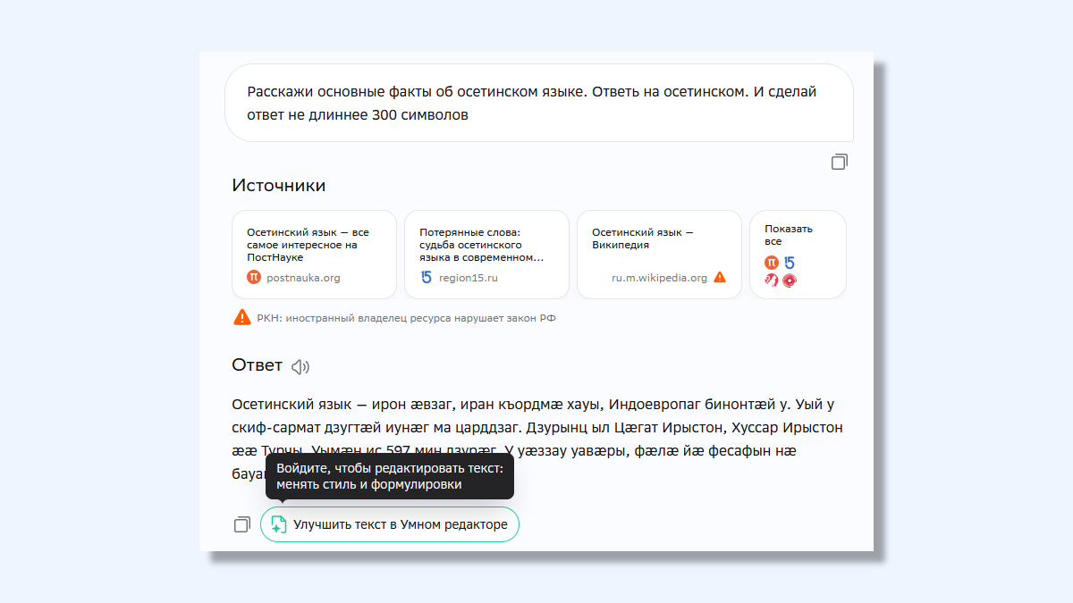Пример ответа от ГигаЧат на осетинском языке