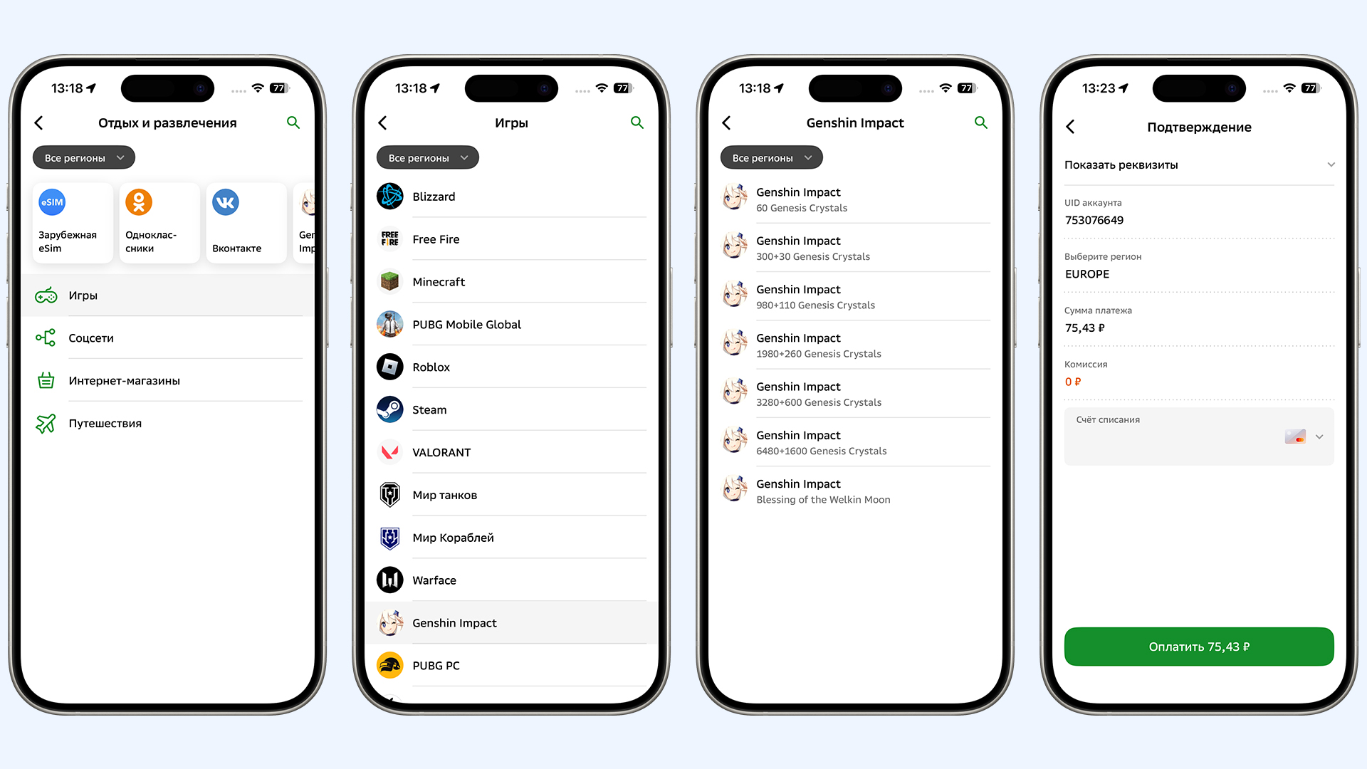 - Пополнение по UID через партнёров. Один из самых быстрых способов покупки кристаллов сотворения и «Полой луны». Вам не нужно передавать доступ к аккаунту — достаточно указать свой цифровой идентификатор (UID) и правильно выбрать сервер.